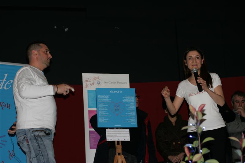 Pour que le plus grand nombre soit sensibilisé à cette chaîne de solidarité, Bernard Goudon proposa à Hélène de venir présenter à nouveau celle-ci lors de la cérémonie des vœux, qui avaient lieu le soir même à la salle des fêtes de La Pastourelle. C’est donc après la présentation des vœux du maire qu’Hélène expliqua à nouveaux son action et chanta avec Stéphane Reynaud la chanson à cappella. Le message semble avoir été entendu car l’attention de l’auditoire était palpable.