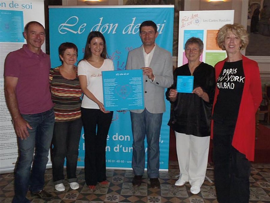 Le 3 octobre 2012, Hélène Palumbo et l’association A.M.P, ont remis la toile, Le don de soi, à Pierre Meffre, Maire de Vaison-la-Romaine, en présence d’Irène Millet, première adjointe Ghislaine Charron, adjointe aux affaires sociales, Alain Carles, conseiller municipal, membre du CCAS, Danièle Gras, chargée de mission auprès de la Direction générale des services de la mairie de Vaison-la-Romaine, membre de la commission des handicaps de la Ville, Laurent Faré, directeur de cabinet de la Mairie de Vaison-la-Romaine, Mme VANHEE, représentant M. Cabanis, directeur de l’hôpital de Vaison-la-Romaine, Jacques Borsarelli, de l’agence Biomédecine, M. Brunel, président du Lion’s club vaisonnais et de la presse.