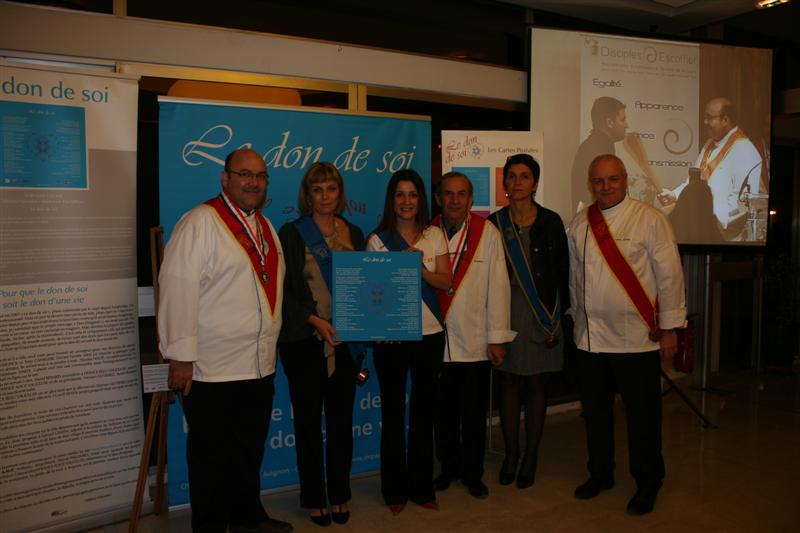 Hélène Palumbo et l’association A.M.P ont remis la toile, Le don de soi, le lundi 8 octobre 2012 à Madame Florence Hertel Directrice de l'Ecole Hôtelière, assistée de Madame Charles et Monsieur Leroy, lors du 19ème Chapitre d’hiver des Disciples D’Escoffier à l'Ecole Hôtelière d'Avignon.